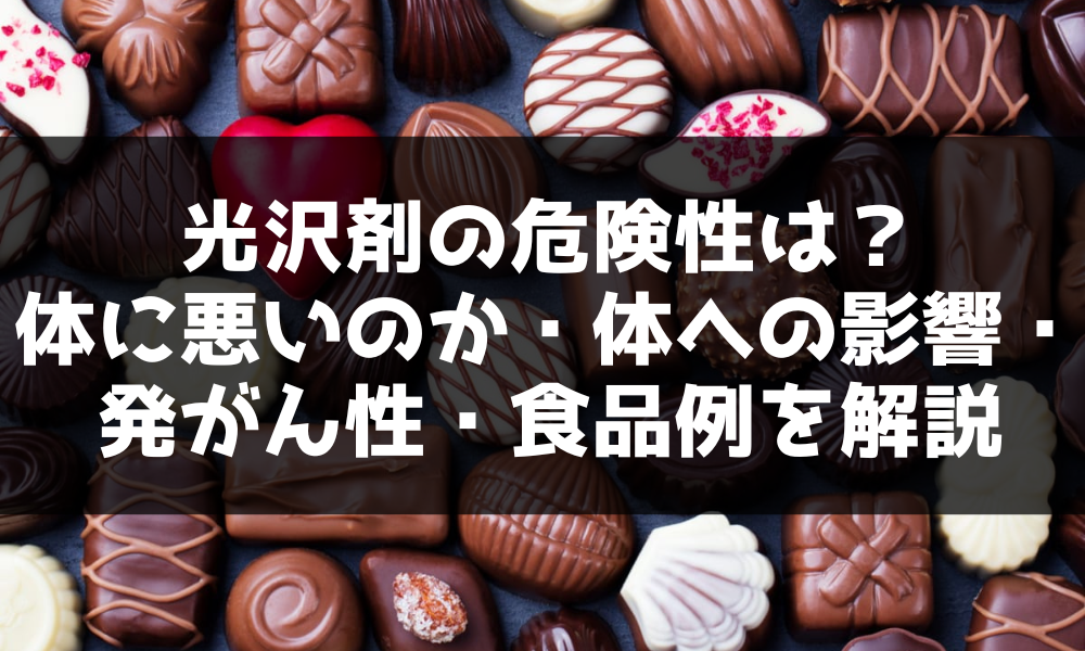 チョコレートやグミ、果物加工品に使われ、カルナウバロウやシェラックなどの成分が一般的となります。しかし、光沢剤が体に悪いのか、発がん性のリスクがあるのか気になる人も多いでしょう。
