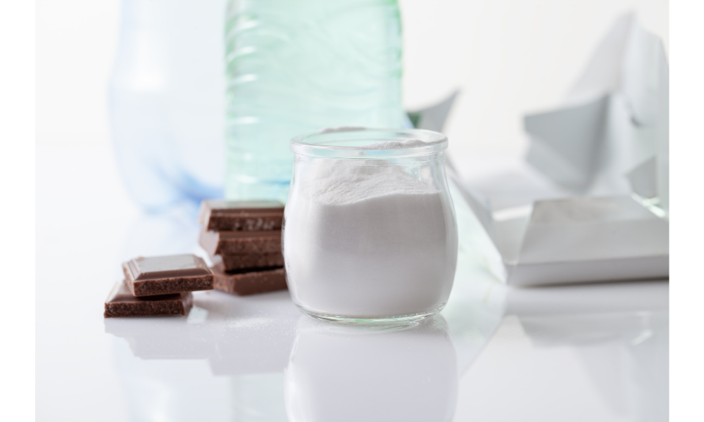 スクラロースは砂糖の600倍の甘さを持つ低カロリー人工甘味料で、清涼飲料水、ガム、プロテイン、ヨーグルト、焼き菓子などに使用されています。