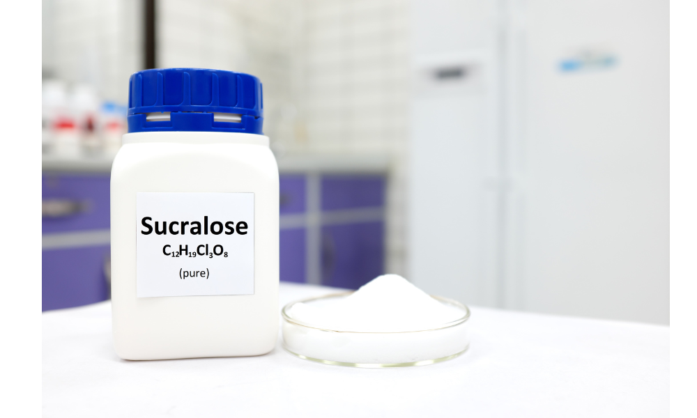 スクラロースは砂糖の600倍の甘さを持つ低カロリー甘味料で、清涼飲料水、ガム、プロテインに使用されています。