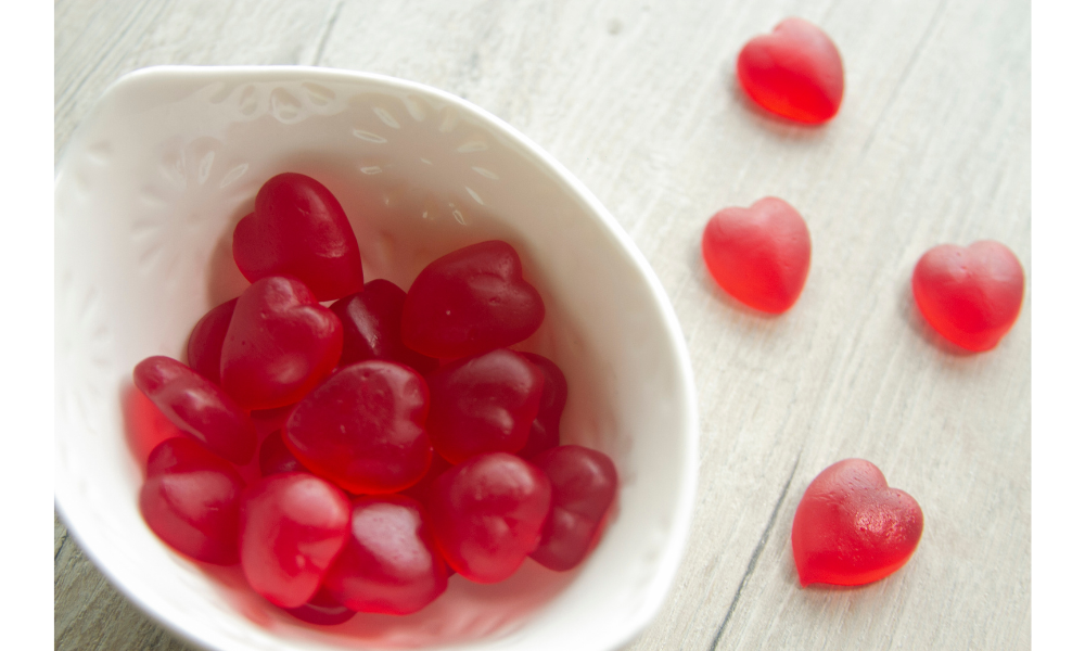 - グミ: いちご、チェリー、ベリー味のグミで赤やピンクの鮮やかな色付け。