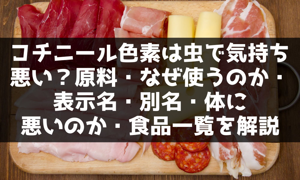 コチニール色素は、ハム、グミ、ヨーグルトなどに鮮やかな赤~ピンク色を付与する天然着色料で、コチニールカイガラムシ由来のため「虫で気持ち悪い」と感じる人もいます。