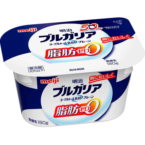 「ブルガリアヨーグルトLB81プレーン脂肪0 180g」は、明治が販売する無脂肪タイプのプレーンヨーグルトで、脂肪0を売りにした健康志向の商品です。