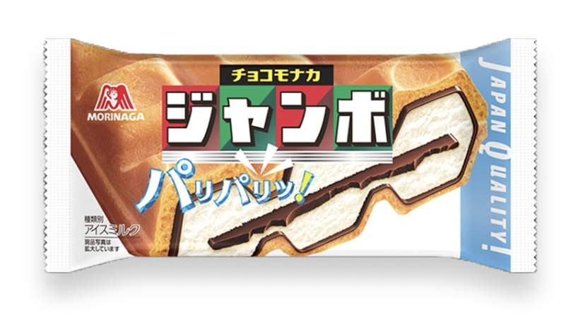 チョコモナカジャンボは、森永製菓のロングセラーアイスで、パリパリの板チョコ、バニラアイス、モナカのサクサク食感が特徴の人気商品です。