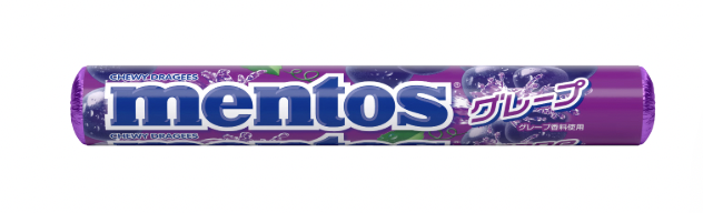 表面のカリッとした糖衣層、下のハードキャンディ、中心のソフトキャンディという独自の3層構造が特徴で、定番の「メントス グレープ」はジュワッと広がる濃縮グレープの味わいが人気です。
