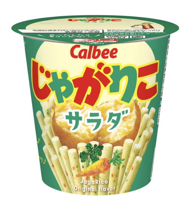 じゃがいも(国産)が主原料で、乾燥じゃがいもも加えて食感を強化しています。植物油で揚げてカリカリに仕上げ、脱脂粉乳や乳等でまろやかなサラダ風味を出しています。