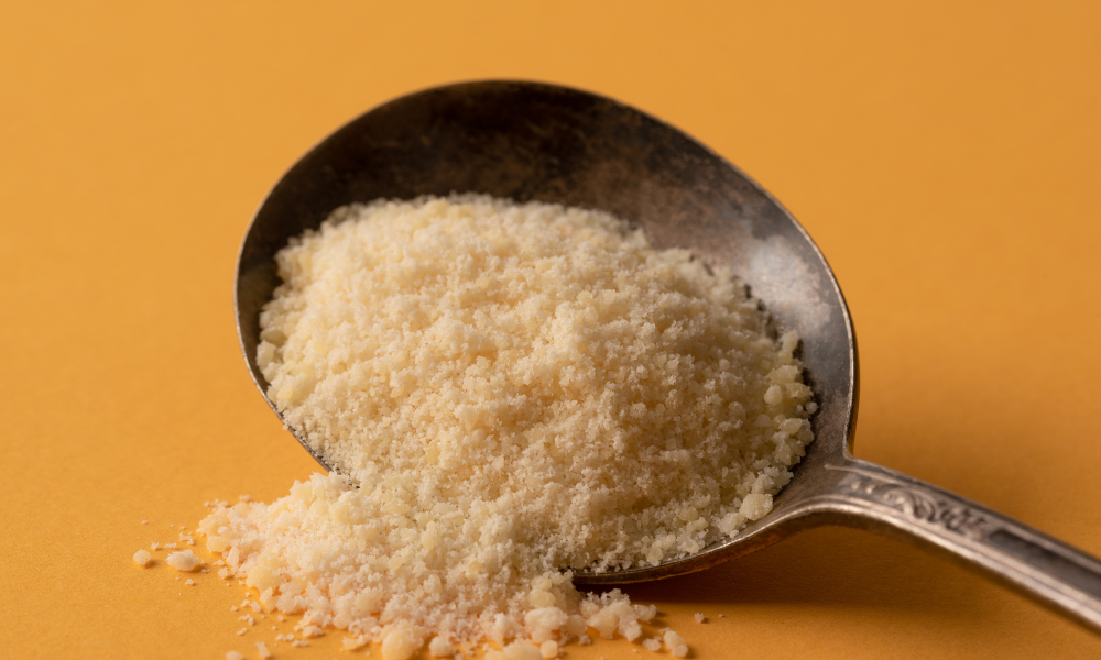 粉チーズやシュレッドチーズがくっついて塊になるのを防ぎ、サラサラの状態を保ちます。