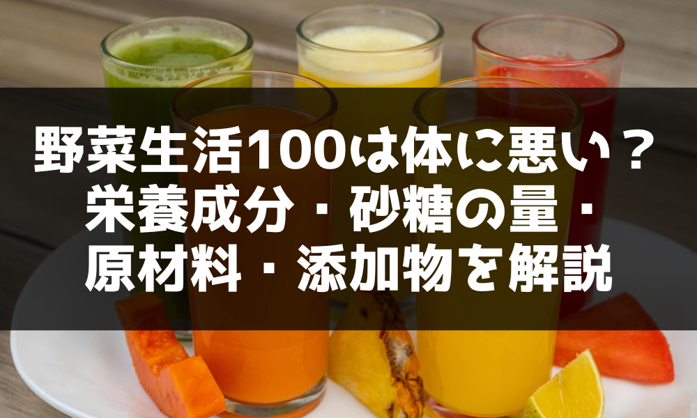 この記事では、「野菜生活100」が本当に体に悪いのか、栄養成分、砂糖の量、原材料、食品添加物について、わかりやすく解説していきますね。