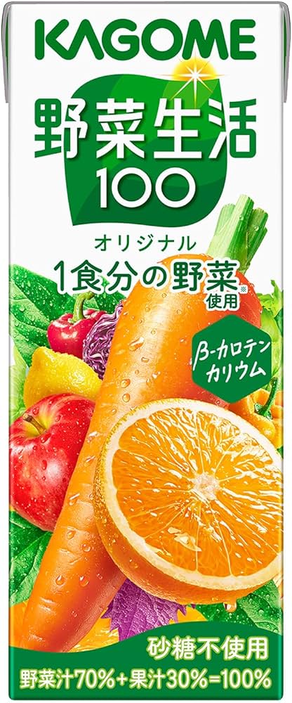 「野菜生活100」は、カゴメが販売するとても人気の野菜と果実をミックスした100%ジュースです。