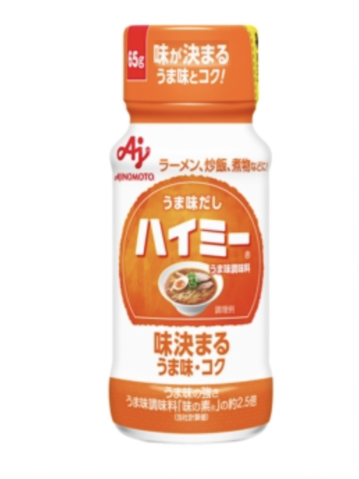 ハイミーは、味の素株式会社が販売する「際立つうま味とコクの調味料」です。こんぶ、かつお、しいたけの3つのうま味成分をバランス良く配合し、素材の味を引き立てながらまろやかなコクを加えます。