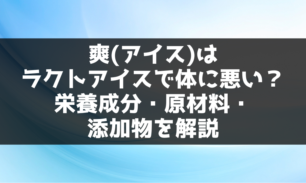 この記事では、爽がどのようなアイスなのか、栄養成分、原材料、食品添加物を詳しく解説し、爽が本当に体に悪いのかを整理してお伝えします。